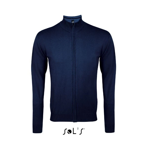 QUALITY: 280 JERSEY - 49% cotton, 49% akryl, 2% polyamid, Classic style, Set in sleeves, Rib 1x1 high collar, inside contrasted knitted striped band, Elastane rib 1x1 cuffs and waistband for a better comfort, Front opening with hidden zip, Fully fashioned armholes, Straight fit; Certificate: STANDARD 100 by OEKO-TEX®