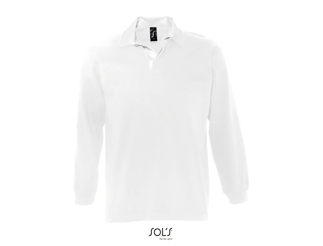 Elastane rib cuffs, Long sleeves, Collar and placket in white cotton twill, 2 white rubber buttons, Cut and sewn; Certificate: STANDARD 100 by OEKO-TEX®