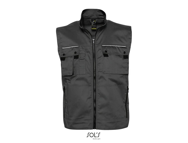 QUALITY: 240 POLYCOTTON - 65% polyester, 35% cotton; 6 pockets including 1 portable and 1 inside pocket, Pocket flap with reflective piping, 3 pen slots, Injected black zip opening, Woven inside ID label
