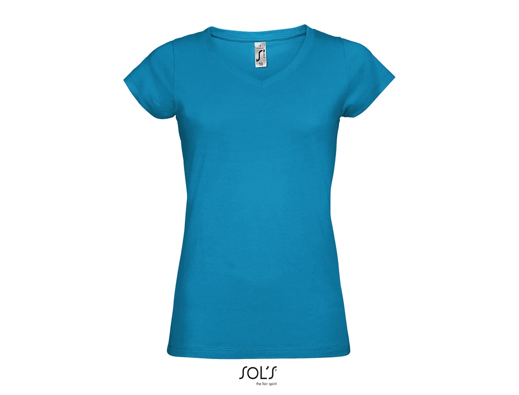 Material: 150 Jersey - 100% semi-combed cotton, reinforcing tape at neck. Close-fitting cut, v-neck with elasthane rib edges, cut and sewn; Certificate: STANDARD 100 by OEKO-TEX®