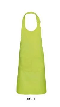 QUALITY: 240 POLYCOTTON, 65% polyester - 35% cotton; CLASSIC, Front pocket with 2 compartments, Adjustable neckline with metal buckle; universal size: 64 x 47 cm
