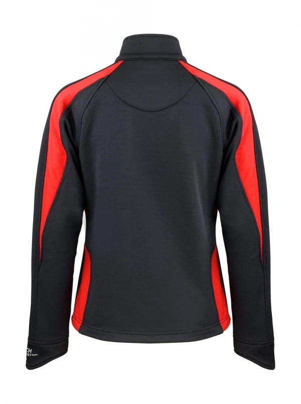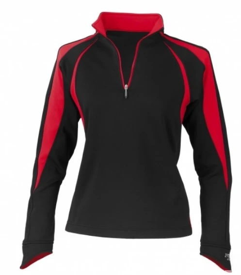 350 gsm Z-TECH® stretch • 85 % polyester 15 % spandex • breathable • dries quickly • 1/4 zip in contrast colour • raglan sleeves with contrast inserts • sporty sleeve ends • reflective logo on left side • slightly fitted waist. • suitable for embroidery and transfer print