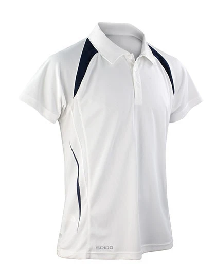 145 gsm • 100 % polyester • function polo from Cool-Dry Mesh with honeycomb effect • neck tape • raglan sleeve with contrast gusset • 3-button placket • breathable structure side gussets • printed stripe pattern up front and Spiro logo on bottom right • extended back • double-needle stitching on sleeve and bottom hem • side seams • suitable for embroidery and printing