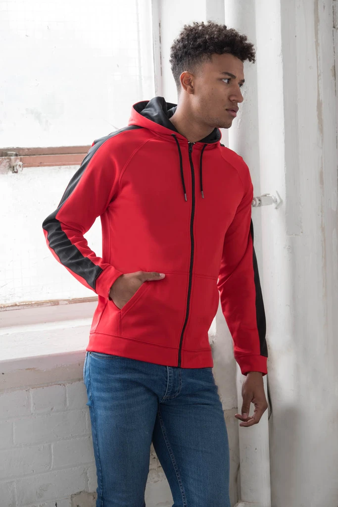Split kangaroo pouch pocket with hidden opening for ear phone cord feed