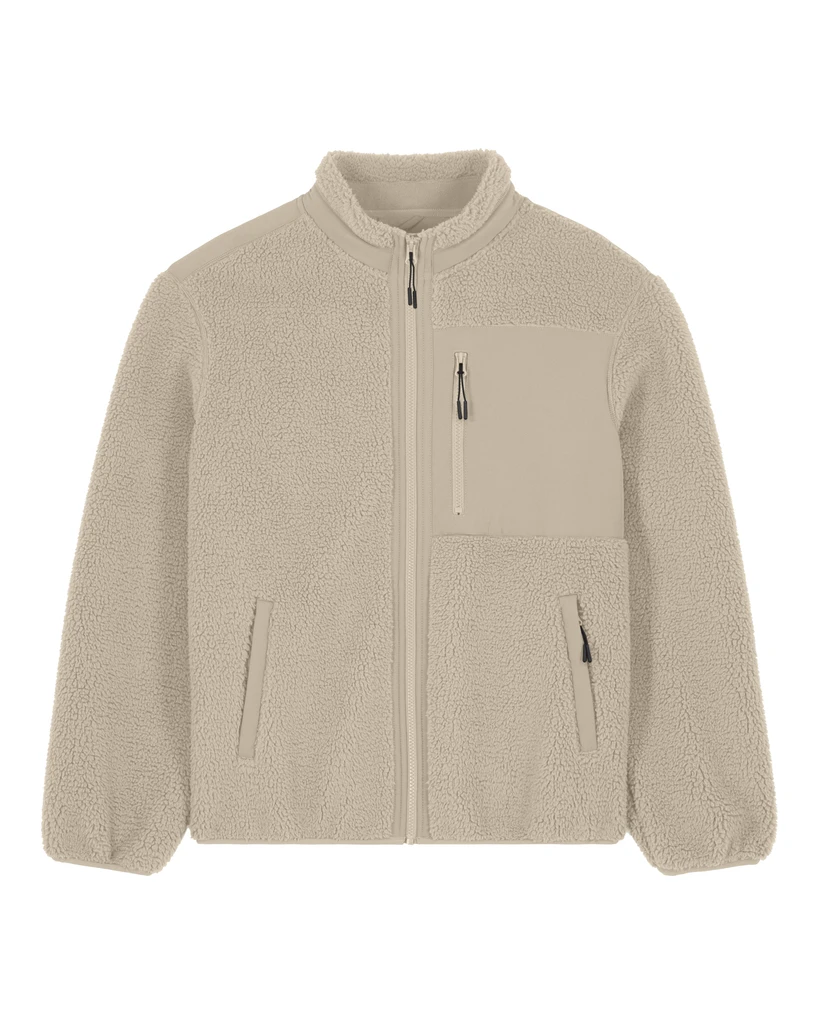 Material Shell: Sherpa, 100% Polyester - Recycled, Fabric washed, 450 GSM Lining: Polar Fleece, 100% Polyester - Recycled, Brushed