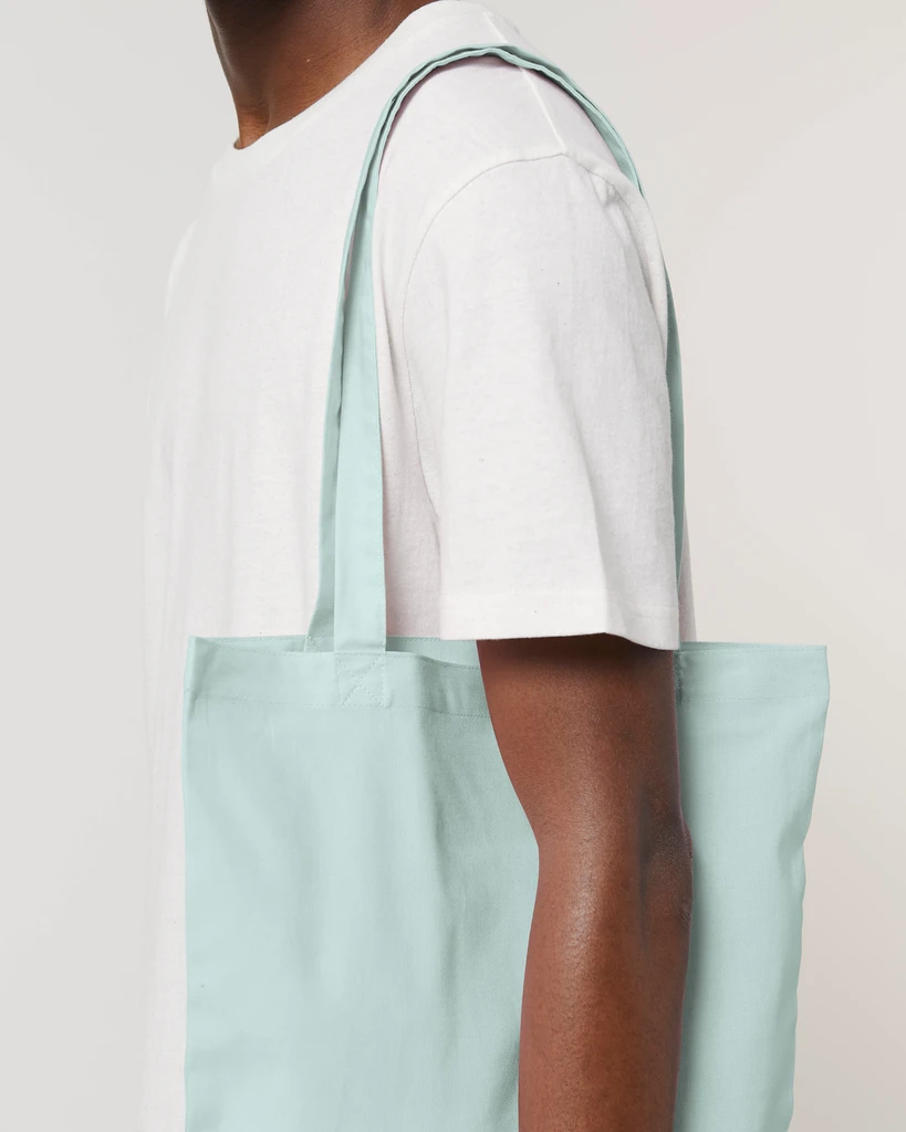 Top edge double folded for strength and clean finish, long handles with reinforced cross stitch
