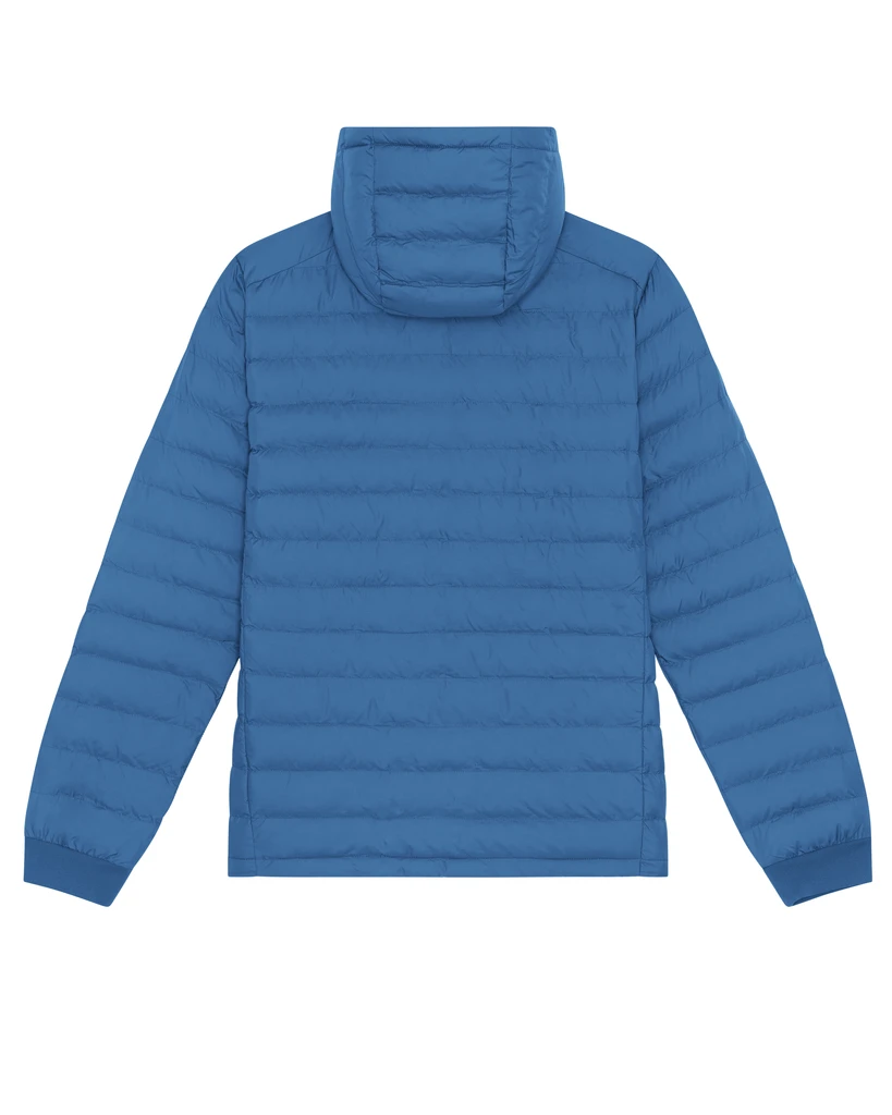 Material: 100% Recycled polyester, Fluorine-free DWR; Weight: 75gsm; Fitted cut, set-in sleeve, high collar with detachable hood and matte metal hidden snaps, hood opening and bottom hem with adjustable plastic stopper and elastic cord, reverse nylon zip at center front, zipped welt pockets with extra grosgrain puller, fully quilted, side panels for better shape, 1x1 rib at sleeve hem, inside bound seams; Certificates: Global Recycled Standard (GRS), Fair Wair, STANDARD 100 by OEKO-TEX®, Peta - Approved VEGAN
