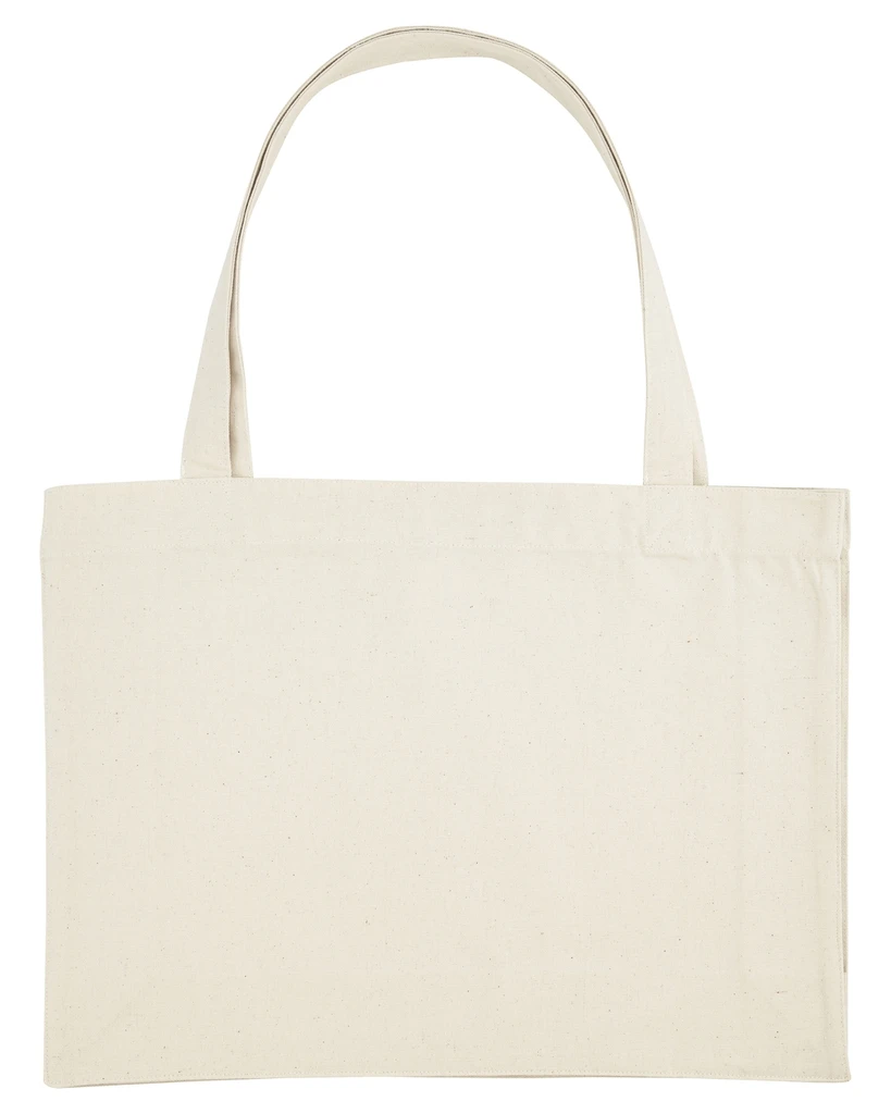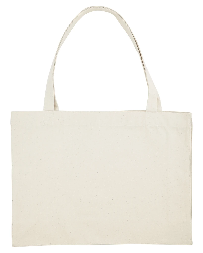Weight: 300 gsm; Material: CANVAS - 80% RECYCLED COTTON, 20% RECYCLED POLYESTER; Top edge double folded for strength and clean finish, Side soufflet, Long handles with reinforced cross stitch, Single edge stitch on all seams in matching body colour thread
