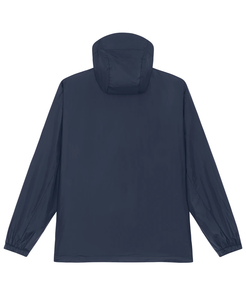 Material: 100% Recycled polyester, Fluorine-free DWR; Weight: 75gsm; Medium Fit, set-in sleeve, longer back length with curved hem for protection. bottom hem with adjustable plastic stopper and elastic cord, sealed hood visor and sealed welt pockets, double layered hood with adjustable plastic stopper and elastic cord on inside, reverse nylon zip at center front with chin guard, zipped welt pockets with extra grosgrain puller, side panels for better shape, semi-elastic sleeve cuff, self fabric half moon at back neck, inside zip opening at bottom hem and wearer's left chest for easy decoration; Certificates: Global Recycled Standard (GRS), Fair Wair, STANDARD 100 by OEKO-TEX®, Peta - Approved VEGAN
