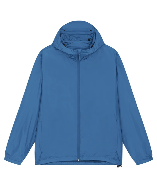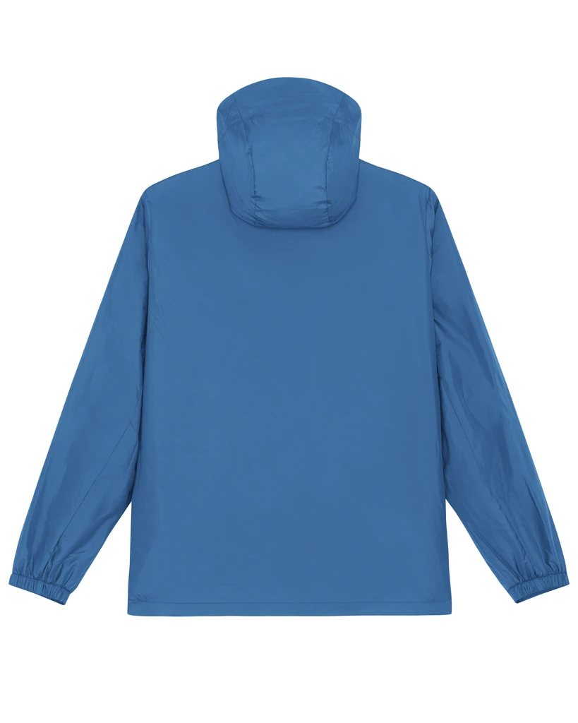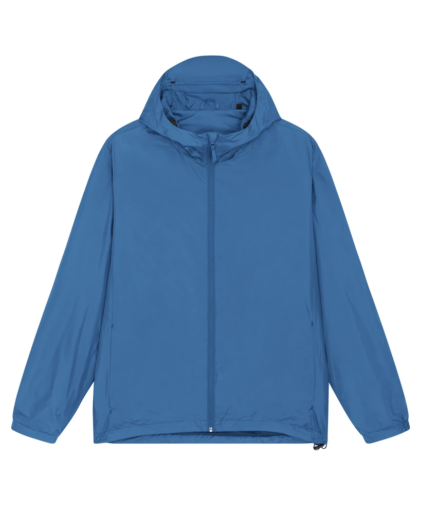 Material: 100% Recycled polyester, Fluorine-free DWR; Weight: 75gsm; Medium Fit, set-in sleeve, longer back length with curved hem for protection. bottom hem with adjustable plastic stopper and elastic cord, sealed hood visor and sealed welt pockets, double layered hood with adjustable plastic stopper and elastic cord on inside, reverse nylon zip at center front with chin guard, zipped welt pockets with extra grosgrain puller, side panels for better shape, semi-elastic sleeve cuff, self fabric half moon at back neck, inside zip opening at bottom hem and wearer's left chest for easy decoration; Certificates: Global Recycled Standard (GRS), Fair Wair, STANDARD 100 by OEKO-TEX®, Peta - Approved VEGAN