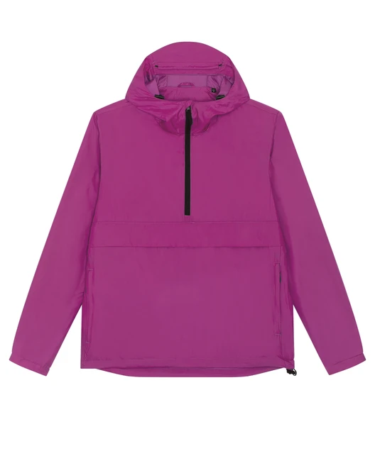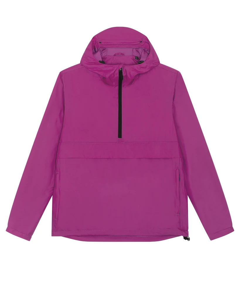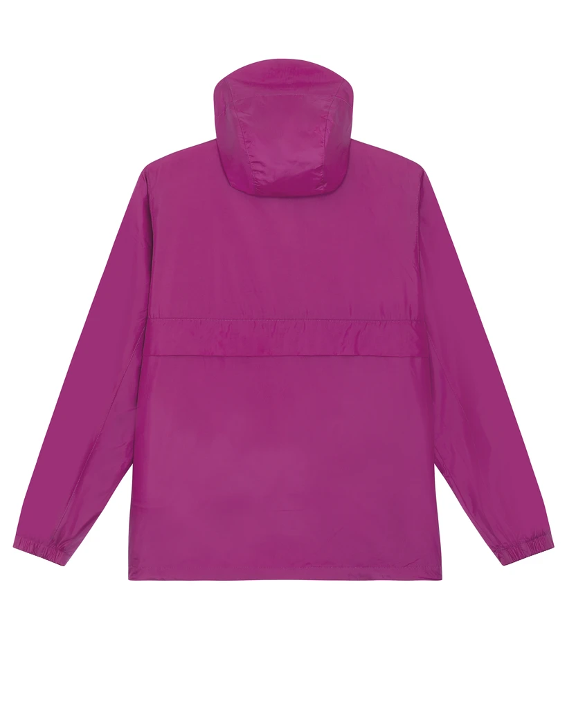 Material: 100% Recycled polyester, Fluorine-free DWR; Weight: 75gsm; Medium Fit, set-in sleeve, longer back length with curved hem for protection, bottom hem with adjustable plastic stopper and elastic cord, sealed hood visor, double layered hood with adjustable plastic stopper and elastic cord on inside, reverse nylon zip at center front with chin guard, zipped welt pockets with extra grosgrain puller, non functional flap front and back, semi-elastic sleeve cuff, self fabric half moon at back neck, inside zip opening at bottom hem and inside loop with snap at armhole for easy access for chest decoration; Certificates: Global Recycled Standard (GRS), Fair Wair, STANDARD 100 by OEKO-TEX®, Peta - Approved VEGAN