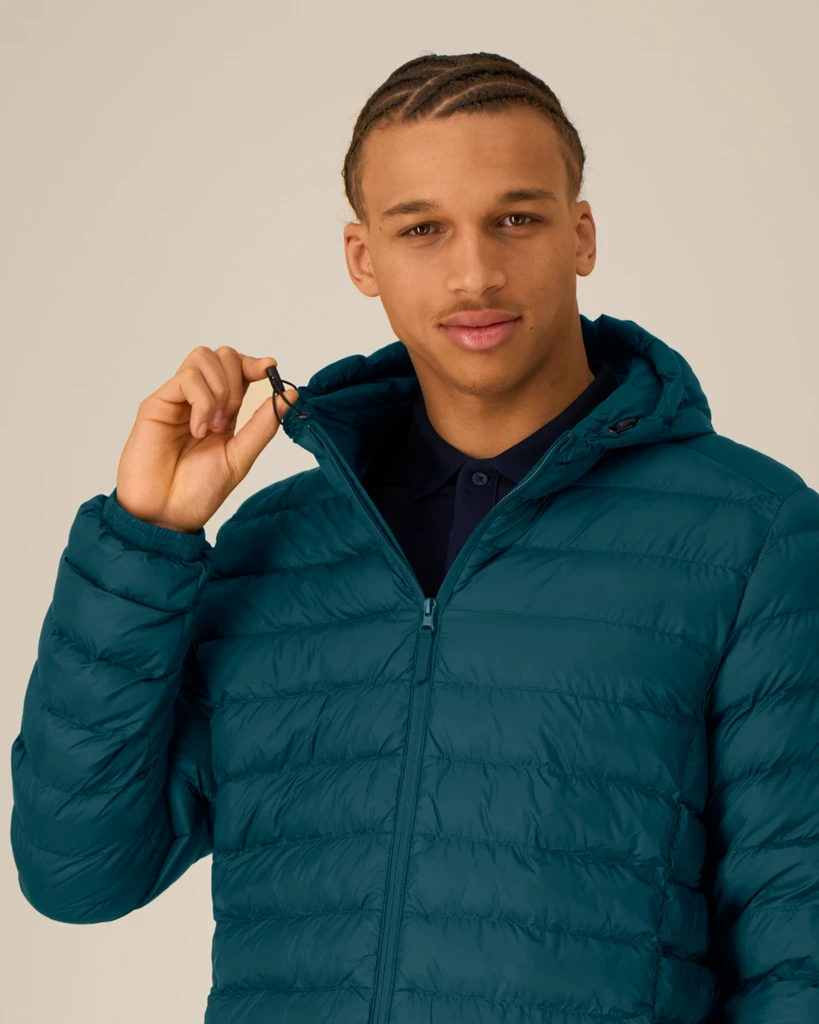 - Hood opening and bottom hem with adjustable plastic stopper and elastic cord