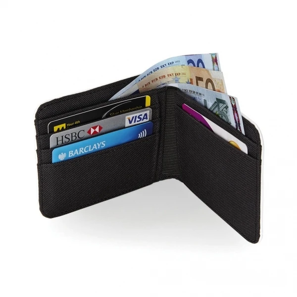 Material: Microfibre/600D Polyester; Dimensions open: 24.5 x 9.5 cm; Dimensions closed: 12 x 9.5 cm; TearAway label for ease of rebranding, HD sublimation image surface, press-optimised decoration panel, can be decorated front and rear, contemporary design, multiple interior card slots, cash sleeve