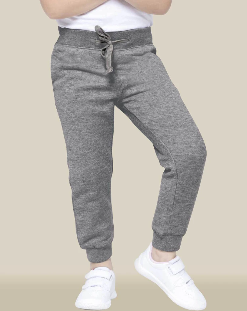 Kids unisex pants with elasticated waist and bottom with self-coloured drawcord.