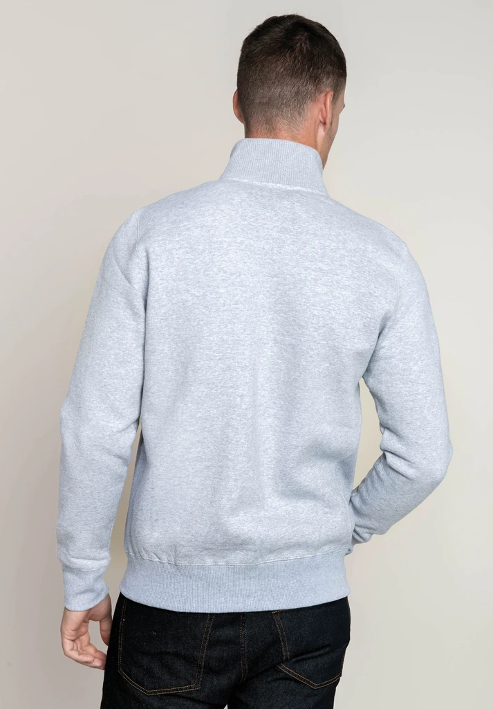 80% combed cotton / 20 % polyester. Low shrinkage brushed fleece. Silicone wash. Fitted style with ribbed side panels. Matching neck tape (except for White body where neck tape is Oxford grey). Contrast striped ribbed inner collar. 2 front pockets. Ribbed cuffs and hem. YKK® zip.