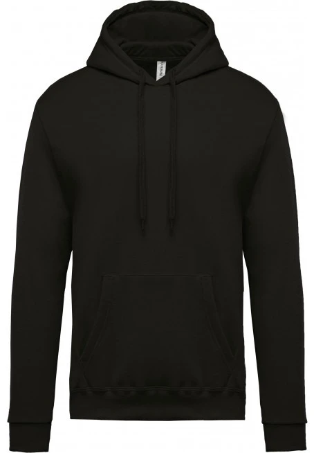 80 % cotton / 20 % polyester. Brushed fleece. Set-in sleeves. Tubular cut. Lined hood with matching drawstring. Kangaroo pockets. Ribbed cuffs and hem.