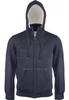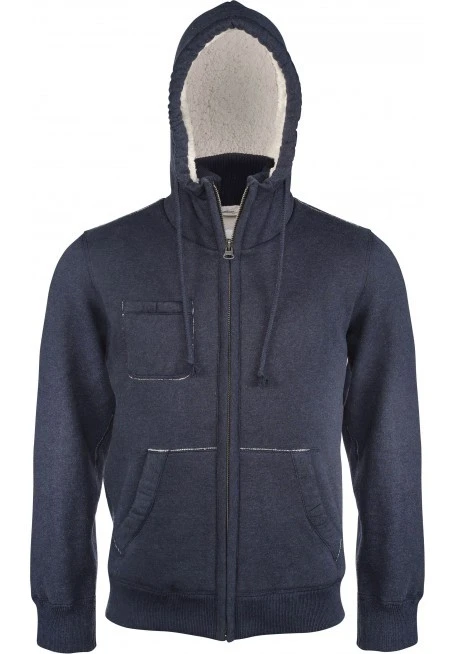 60% cotton / 40% polyester. Sherpa lined body and hood. Vintage look. Kangaroo pockets. Right chest pocket. Full length vintage look metal zip. Deep ribbed collar, cuffs and hem. Raw edge finishing.