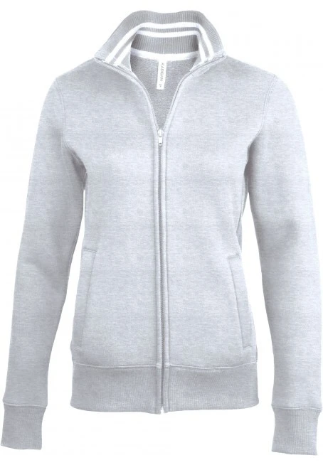 80% combed cotton / 20 % polyester. Low shrinkage brushed fleece. Silicone wash. Fitted style with ribbed side panels. Matching neck tape (except for White body where neck tape is Oxford grey). Contrast striped ribbed inner collar. 2 front pockets. Ribbed cuffs and hem.