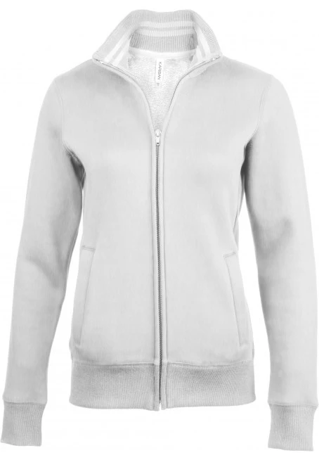 80% combed cotton / 20 % polyester. Low shrinkage brushed fleece. Silicone wash. Fitted style with ribbed side panels. Matching neck tape (except for White body where neck tape is Oxford grey). Contrast striped ribbed inner collar. 2 front pockets. Ribbed cuffs and hem.