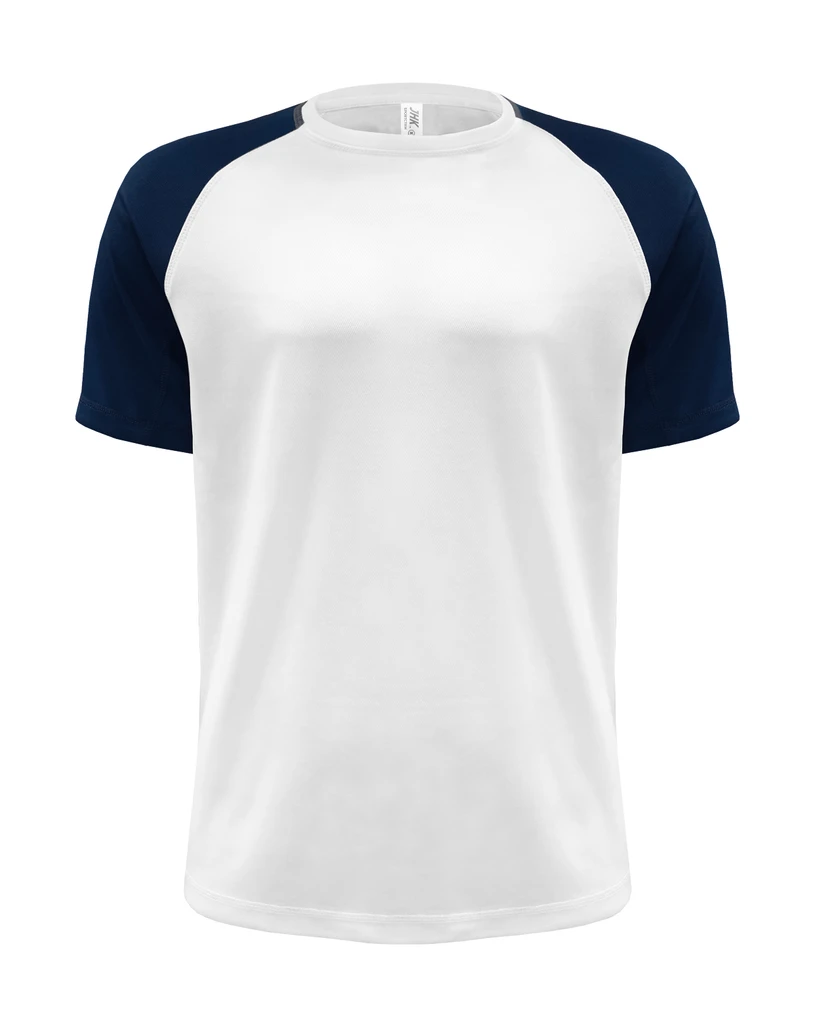 Men's sports t-shirt with short raglan sleeves in contrast and with half-sleeve decorative stitching. Removable label Available in 4 colors and from size S to XXL.