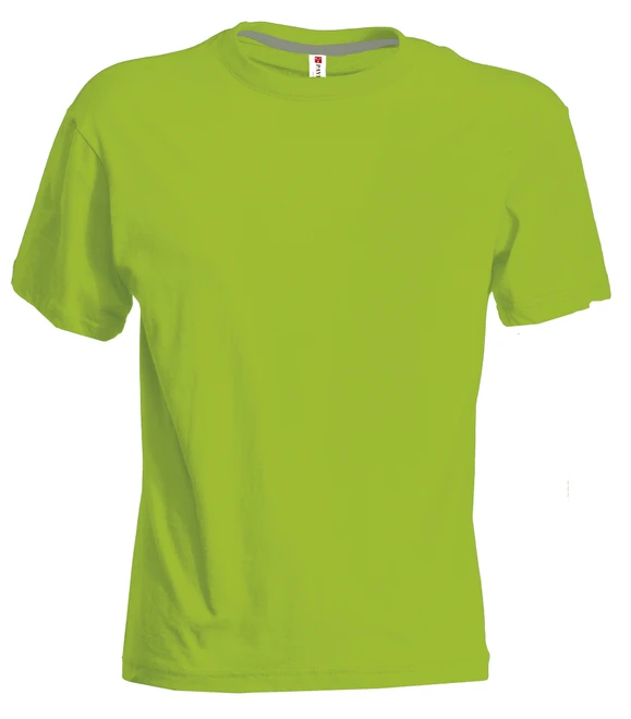 Children’s short-sleeved crew neck t-shirt, with 1.5 cm spandex mix rib neckband with top stitching on the front, contrasting shoulder-to-shoulder reinforcement tape visible on the inside collar, stretch seams, tubular design (camouflage version with side seams)