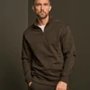 Our Ribbed Interlock Half Zip is a cool sweatshirt, featuring great details such as herringbone neck tape, a flat back rib, and ribs with elastane. It is stretchy and comfortable to wear. This sweatshirt is stylish as well as practical and comfortable.