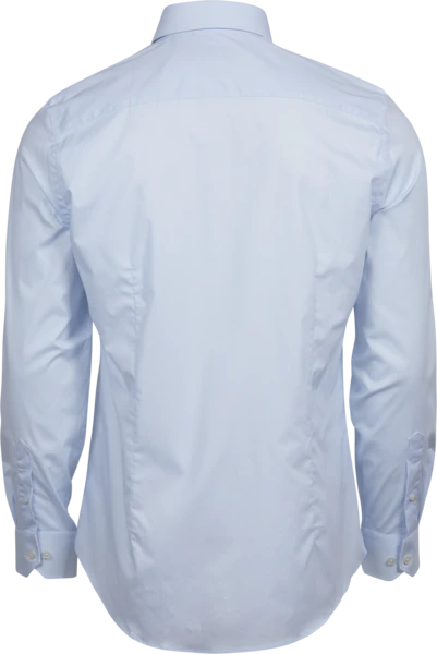 Fitted men's dress shirt with stretch for total comfort. Button under collar with completely invisible button placement and two button cuffs.