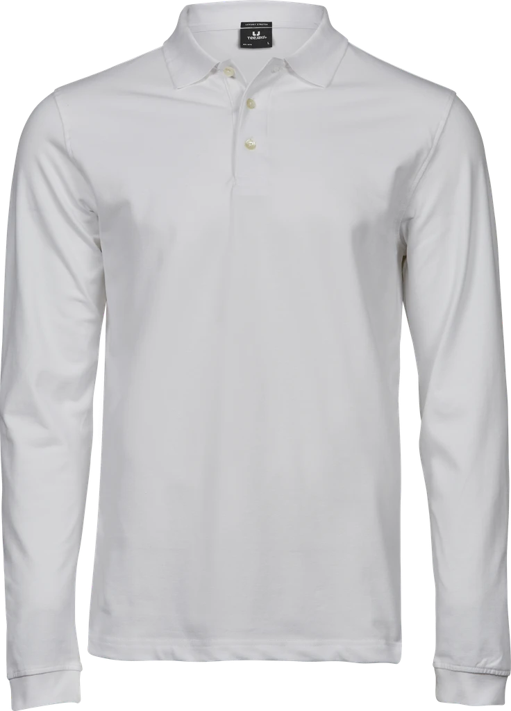 Our luxury polo shirt with long sleeves. Like the short-sleeved model it is made from an organic cotton/elastane fabric that gives you excellent comfort and a perfect fitting. It features a tailored fit, a mini pique finish, and a flat knit collar with elastane, and the sleeves are finished with low cut cuffs with elastane.