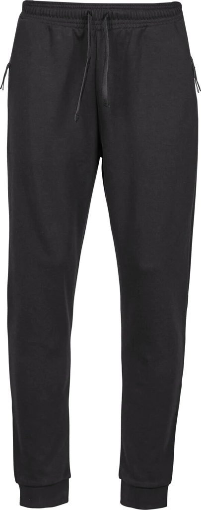 Athletic pants are comfortable to wear. They are made of a cotton/polyester blend. They have an elasticated drawstring waist, custom fabric cuffs and two front zip pockets. Perfect for a casual lifestyle or the gym.
