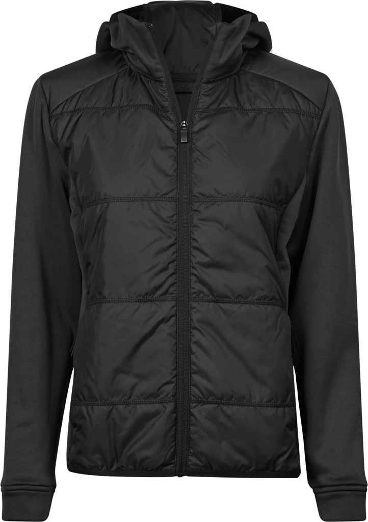 This Women's Hybrid-Stretch Hooded Jacket is made of 300T polyester fabric in a combination with stretch fleece panels and sleeves. It is insulated with premium DuPont™ padding at the body. Cuffs and elastic banding at the bottom hem for a modern look. It features quality SBS zippers, inner pocket and 2 large hidden front pockets. The hood makes the jacket extra comfortable on colder days.