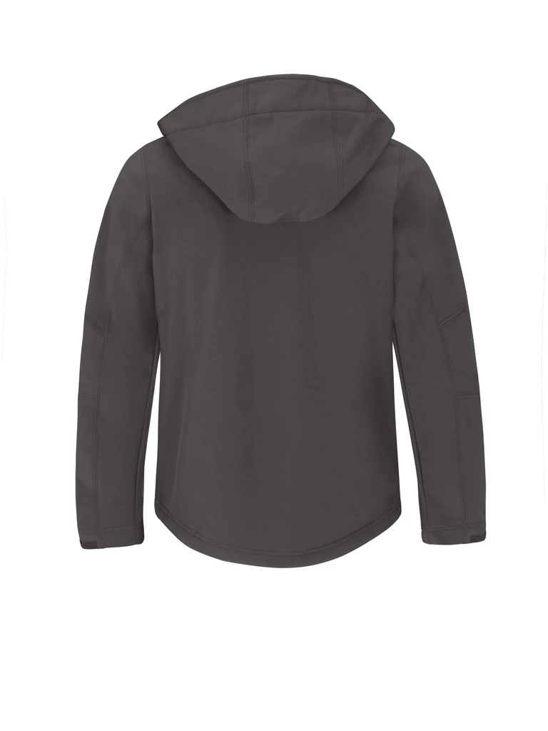 Outer fabric: 94 % polyester 6 % elastane • Mid layer: breathable microporous membrane • Inner fabric: anti-pilling fleece resp. polyester mesh lining • removable hood adjustable in size • reversely sewn-in full zip with wind protection border inside and chin protection • set-in sleeves • cuffs with hook-and-loop fastener • pockets with zipper • longer waistband with drawcord and stoppers in the back • access for decoration on left chest.