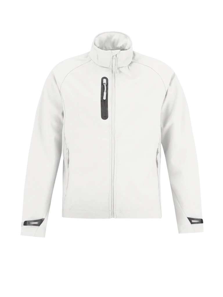 300 gsm • Outer shell: 94 % polyester 6 % elastane • Mid layer: breathable membrane • Lining: 100 % polyester mesh • breathable (up to 5000 gsm in 24h) and water resistant three layered soft shell fabric • head phone loops on inside of collar • full zip with chin protection • zip breast pocket with opening for head phones • two side pockets with zip closure • opening for head phones on the right side pocket • two inside pockets • adjustable tear release sleeve end • bottom hem with elastic drawstring and stoppers • slim fit.