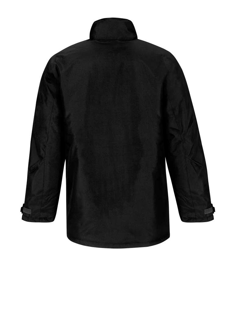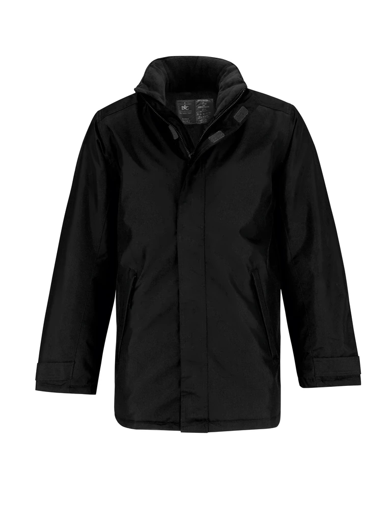 Outer: 100 % Oxford polyester • Inner: 100 % polyester padding (fleece and Taffeta®) • wind and water proof • hood in collar • tone-on-tone zip with wind protection placket and chin protection • adjustable tear release sleeve ends • side pockets with zip closure and trim • inside pocket with zip closure • decoration access on back.