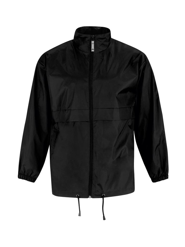 100 % taffeta nylon • water-resistant • collar with integrated hood and pull cord • full zip • side pocket to the right side • elasticated sleeve band • cord pull at hem • roll-up and stow jacket with the K-Way® principle in double zip hip belt.