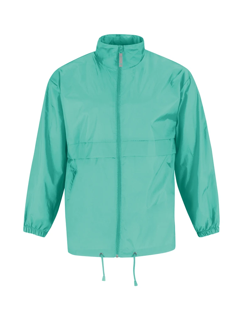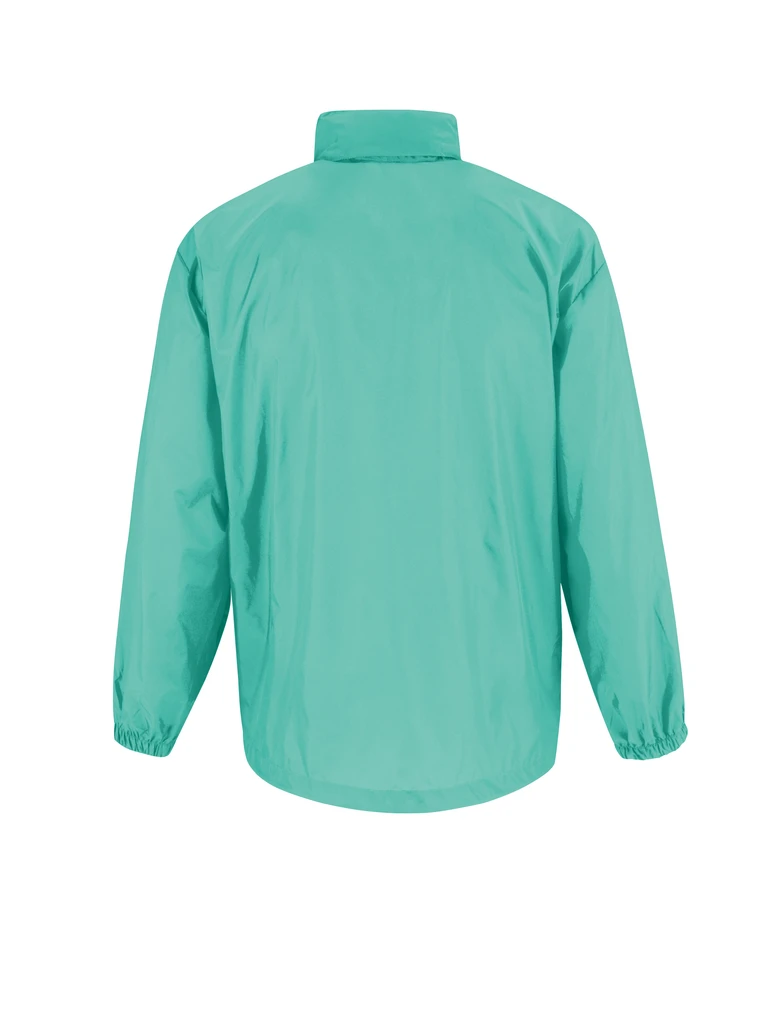 100 % taffeta nylon • water-resistant • collar with integrated hood and pull cord • full zip • side pocket to the right side • elasticated sleeve band • cord pull at hem • roll-up and stow jacket with the K-Way® principle in double zip hip belt.