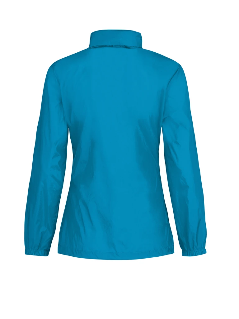 100 % Taffeta® nylon • water resistant • drawcord hood integrated in collar • full zip • two welt pockets • elastic sleeve cuffs • drawcord at bottom hem • windbreaker can be rolled up and folded away according to the K-Way® principle in right pocket with zipper and waistbelt.