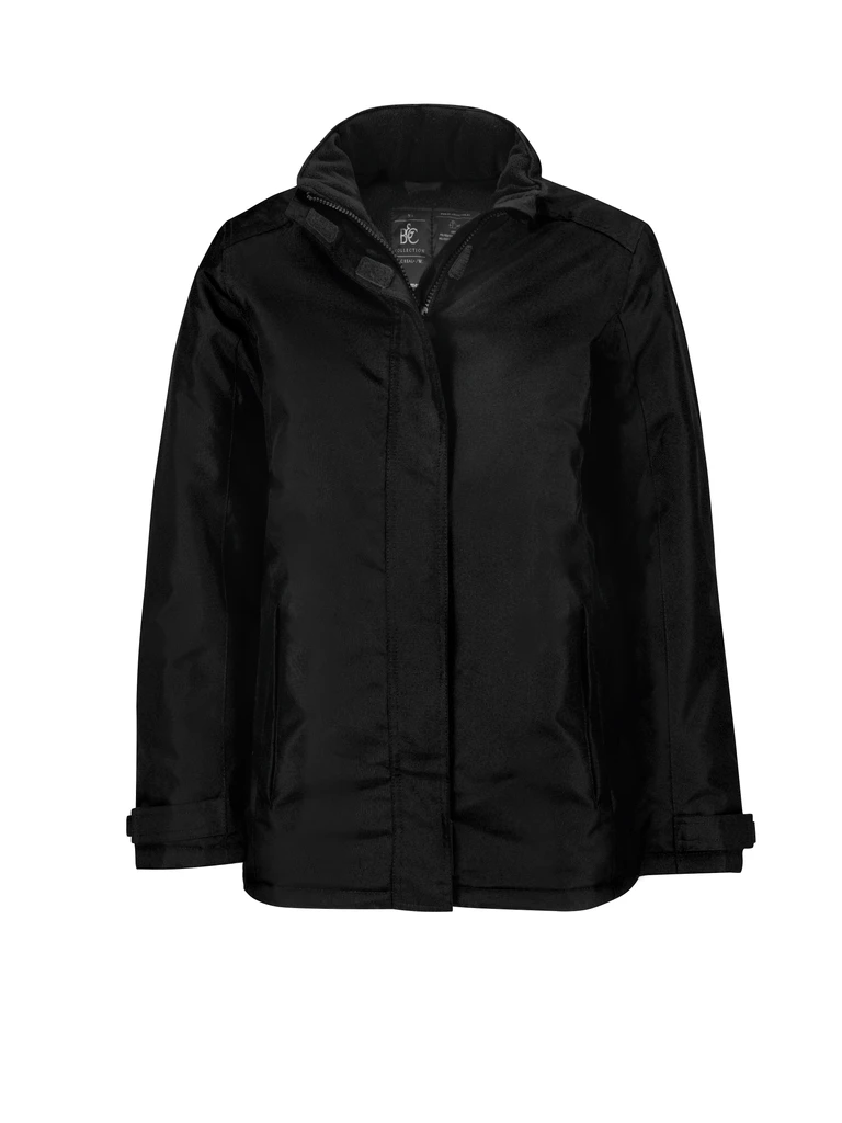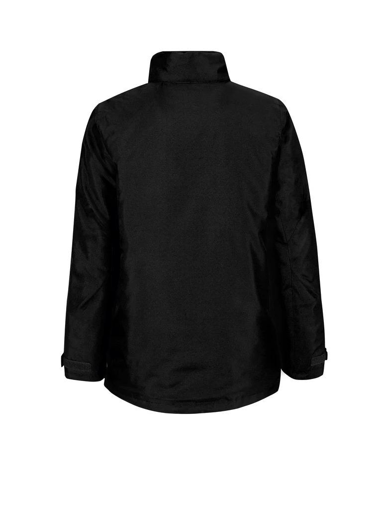 Outer: 100% Oxford polyester • Inner: 100% polyester padding (fleece and Taffeta®) • wind and water proof • hood in collar • tone-on-tone zip with wind protection placket and chin protection • adjustable tear release sleeve ends • inside pocket and two side pockets with zip closure and trim • decoration access on back.
