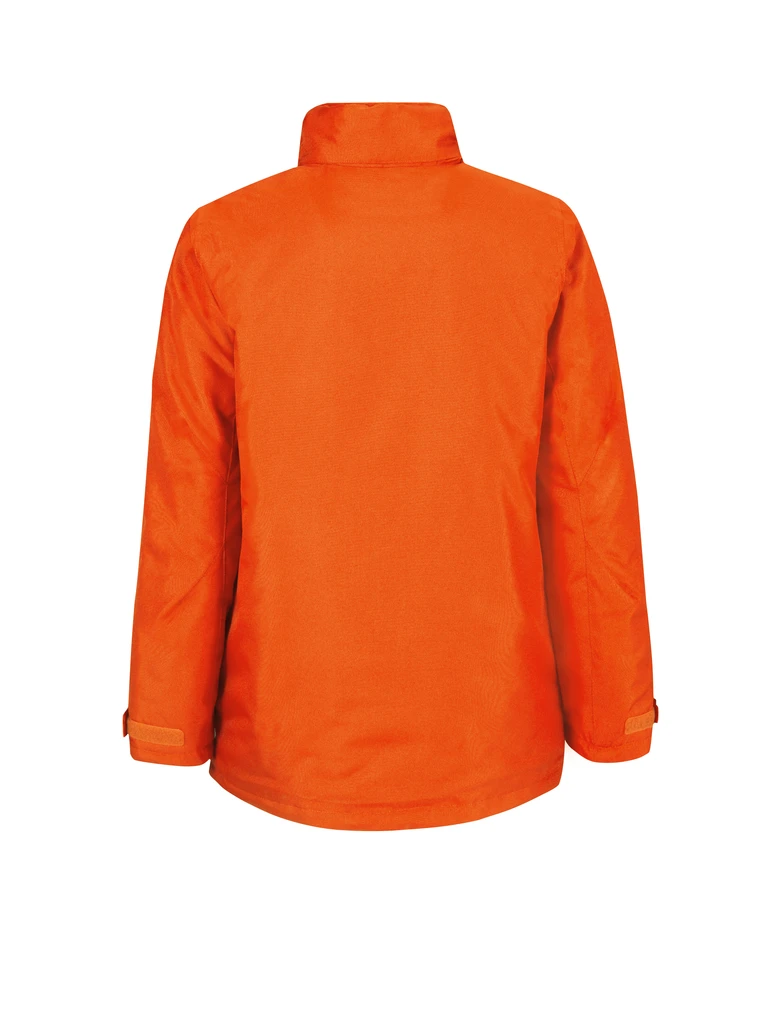 Outer: 100% Oxford polyester • Inner: 100% polyester padding (fleece and Taffeta®) • wind and water proof • hood in collar • tone-on-tone zip with wind protection placket and chin protection • adjustable tear release sleeve ends • inside pocket and two side pockets with zip closure and trim • decoration access on back.
