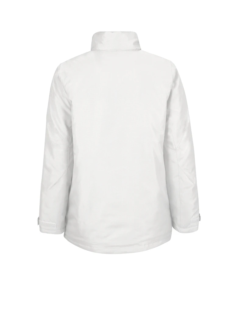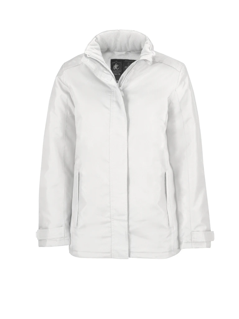 Outer: 100% Oxford polyester • Inner: 100% polyester padding (fleece and Taffeta®) • wind and water proof • hood in collar • tone-on-tone zip with wind protection placket and chin protection • adjustable tear release sleeve ends • inside pocket and two side pockets with zip closure and trim • decoration access on back.