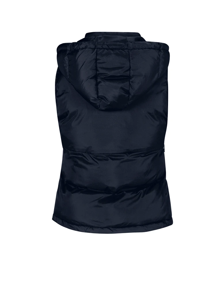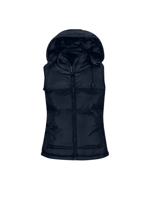 Outer fabric: 100 % water-repellent Taffeta® nylon • lining: 100 % polyester Taffeta® • padded • quilted (down look) • removable adjustable hood • fleece inner collar • open side pockets • large space without seams for decoration on back • access for decoration in back lining • elastic drawcord with stoppers on bottom hem.