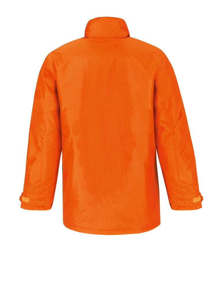 Outer: 100 % Oxford polyester • Inner: 100 % polyester padding (fleece and Taffeta®) • wind and water proof • hood in collar • tone-on-tone zip with wind protection placket and chin protection • adjustable tear release sleeve ends • side pockets with zip closure and trim • inside pocket with zip closure • decoration access on back.