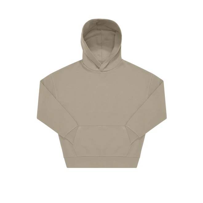 True gender-neutral style with side seams; durable 350 GSM fabric with a sturdy, substantial handfeel; Low Shrinkage Fleece (LSF); 100% cotton face for perfect printability; dropped shoulder and oversized feel for relaxed fit; high quality cuffs and bottom hem in 1x1 rib; self-fabric lined darted hood without drawcords; kangaroo pocket thoughtfully crafted for comfortable hand placement and secure storage.