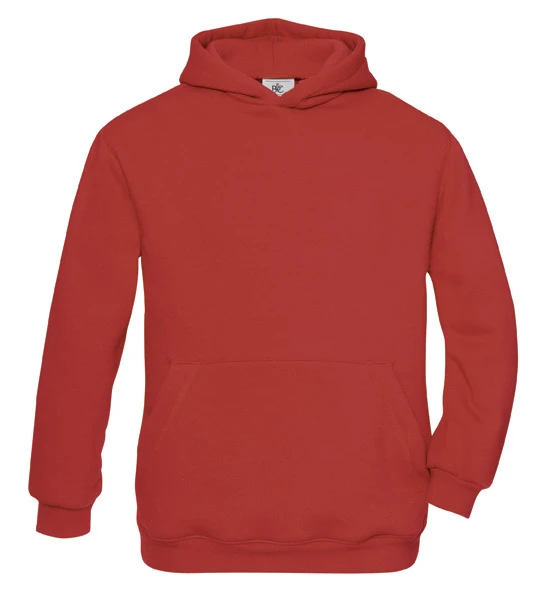 polyester • doubled hood • cover stitching to shoulders • set-in sleeves and pouch pocket • rib-knit cuffs and bottom hem.