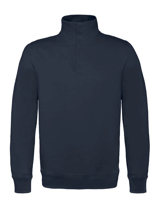Polyester • high collar in 1x1 rib with elastane • covered placket with a tone-on-tone zip (no skin contact with zip) • 1/4 zip • cuffs and bottom hem in 1x1 rib with elastane • set-in sleeves • tubular construction • modern cut