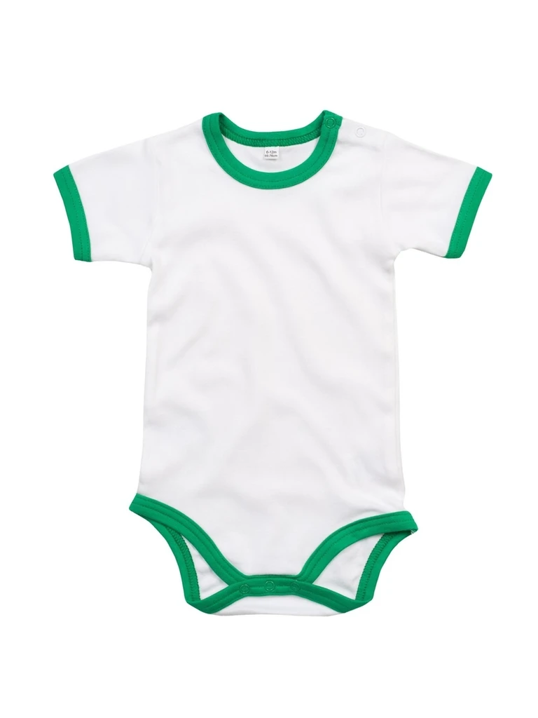 Bodysuit with contrast binding at neck, sleeve ends and around legs