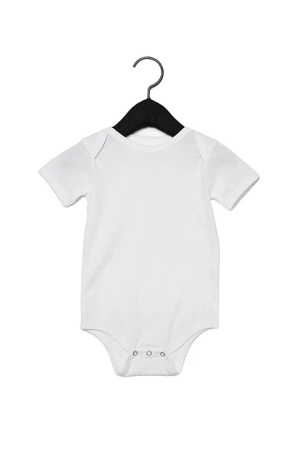 This baby jumpsuit has short sleeves, a round neckline, and three snaps at the crotch. The round neckline expands to easily fit over the head, and the snaps at the crotch allow for easy diaper changes. Designed with 100% Airlume combed and ring-spun cotton, creating a perfect surface for printing that is soft to the touch.