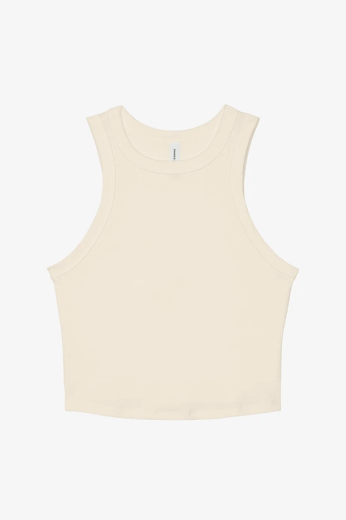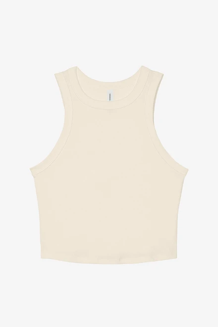 Subtle and soft 1x1 micro ribbing, a timeless silhouette with a high neckline and a racerback mid-length cut. The Micro Rib Racerback gently frames the body with a comfortable and flexible cut made of the softest Airlume cotton.