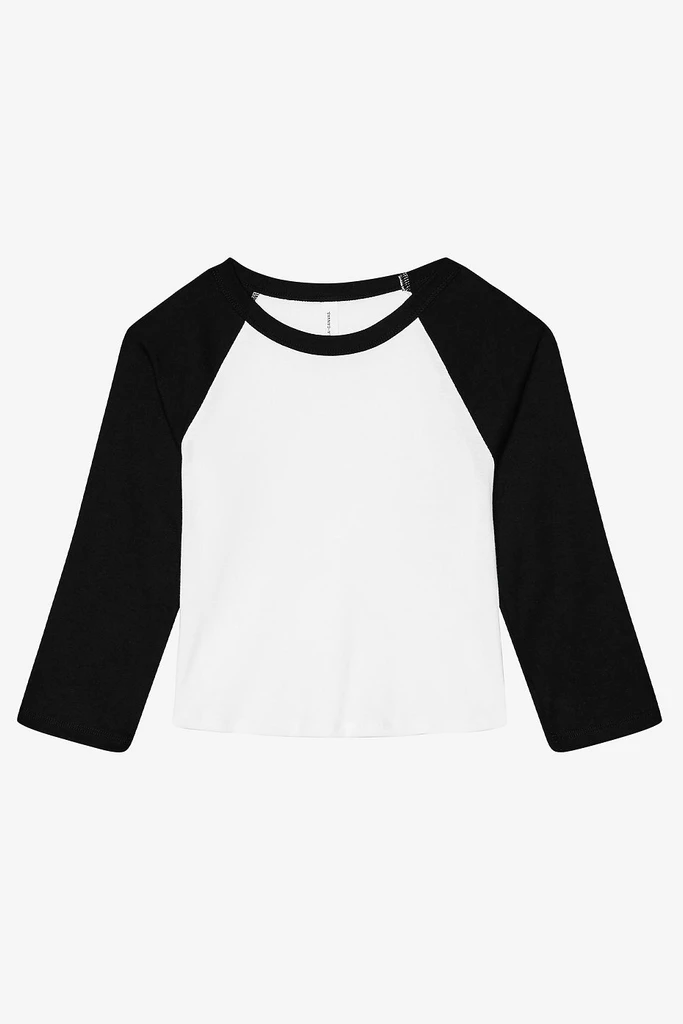 Iconic baseball t-shirt with 3/4 sleeves, soft 1x1 micro rib ribbing, flattering fit and versatile mid-length hem. This must-have style features classic contrasting raglan sleeves and neckline trim, making it a star player in wardrobes around the world.