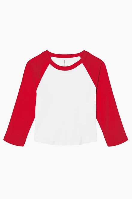 Iconic baseball t-shirt with 3/4 sleeves, soft 1x1 micro rib ribbing, flattering fit and versatile mid-length hem. This must-have style features classic contrasting raglan sleeves and neckline trim, making it a star player in wardrobes around the world.