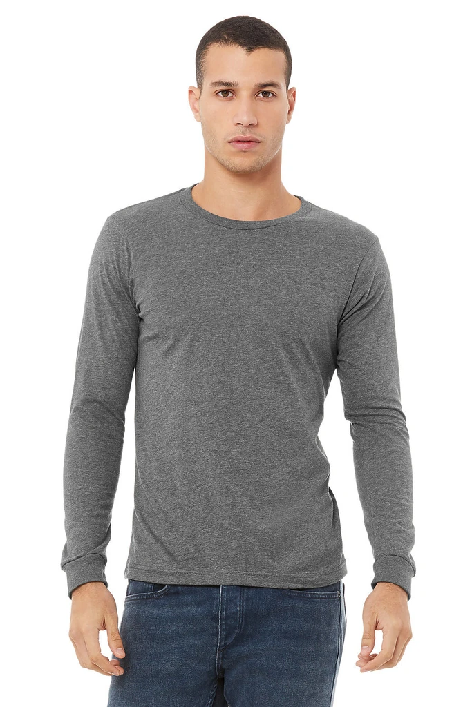 This classic unisex jersey t shirt fits like a well-loved favorite, featuring a classic crew neck, long sleeves and superior combed and ring-spun jersey cotton that acts as a blank canvas for printing.